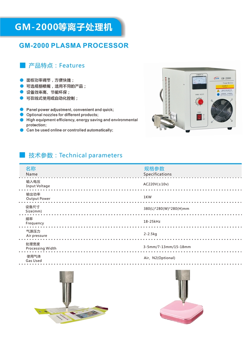 ★對塑料、金屬、玻璃等復(fù)合材料表面移印、絲印、噴碼前等離子預(yù)處理,提高材料表面對油墨的附著力。
