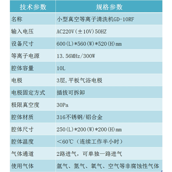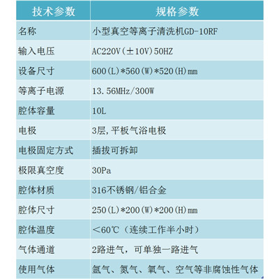 10L射頻真空等離子清洗機_實驗室等離子設備_科研機構等離子表面處理機GD-10RF 技術參數(shù)
